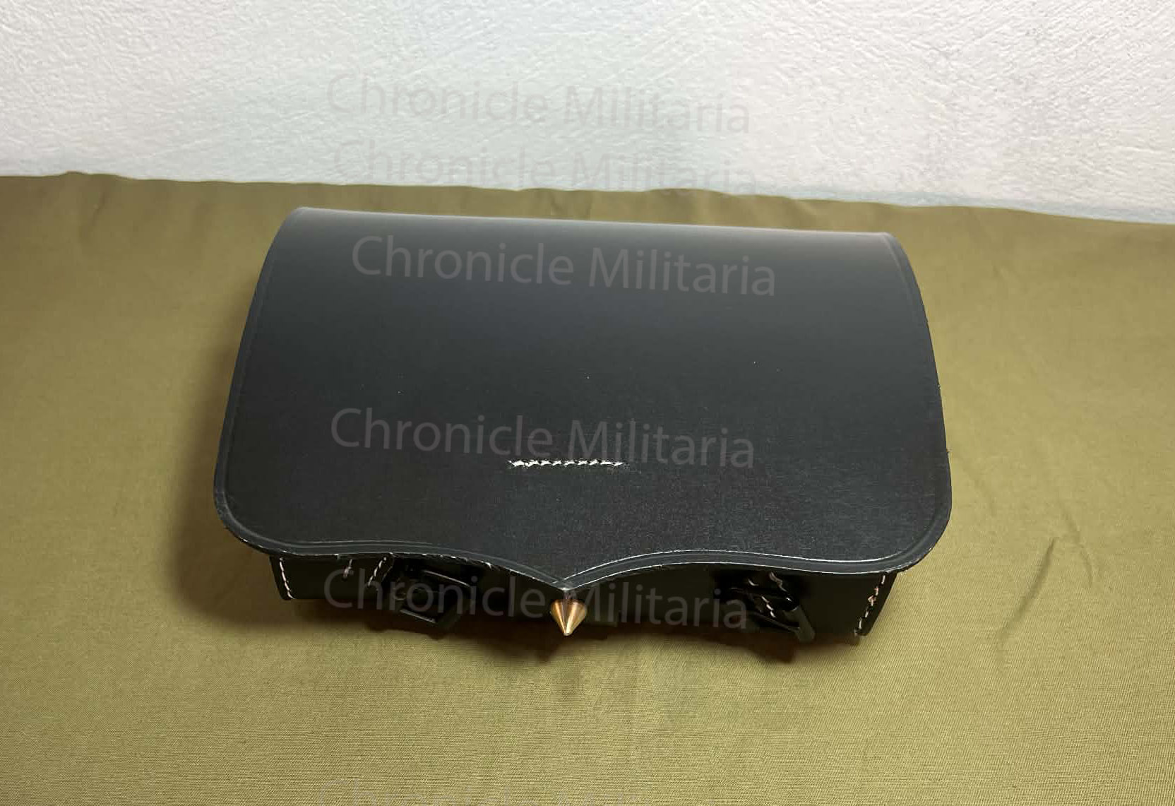 This is American civil war era cartridge box made of quality black leather with all the discerptions of the original box of that time .
