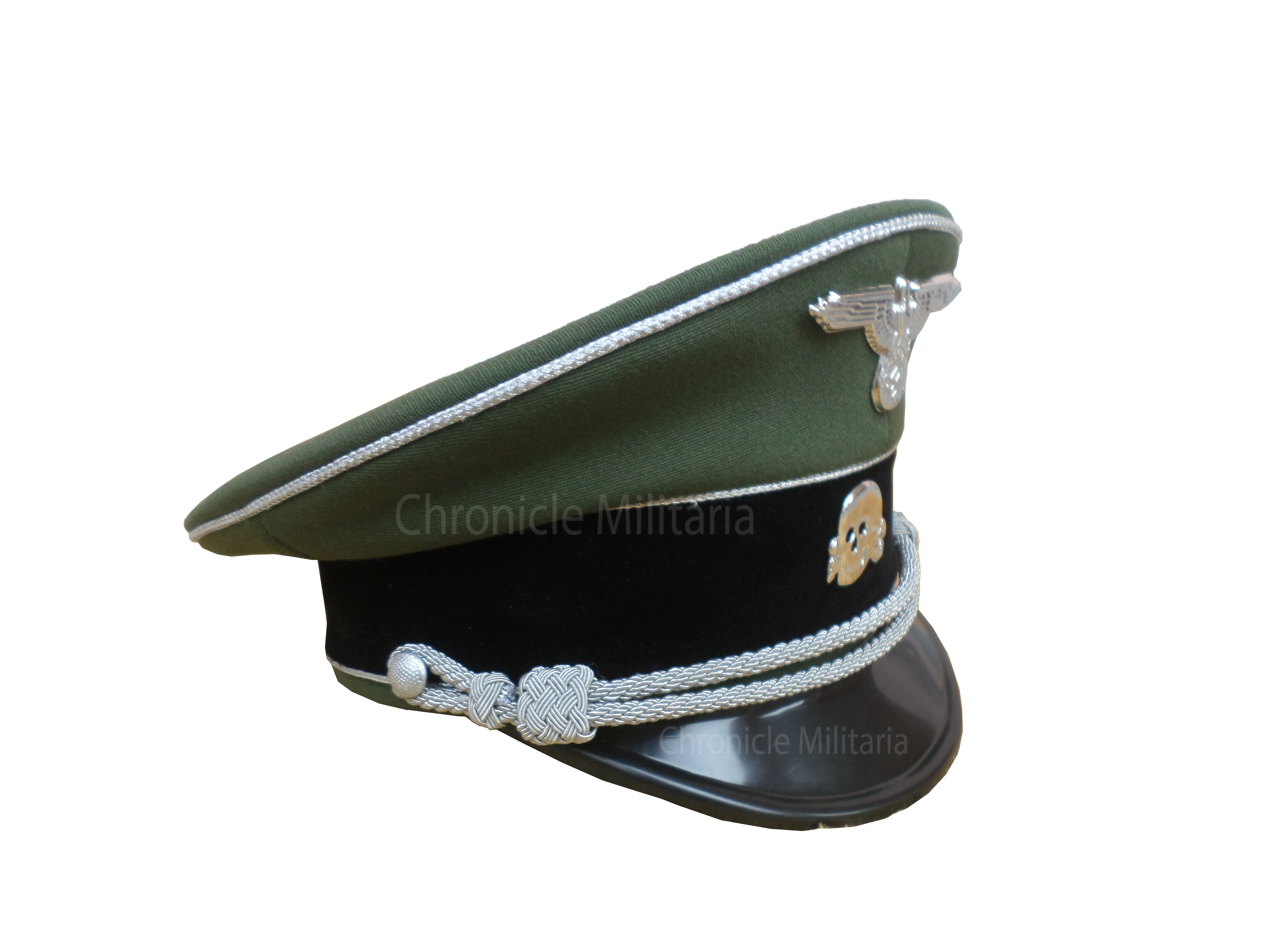 It is Waffen SS Officer visor cap made of gaberdine . Its silver piped and with all other ss insignia