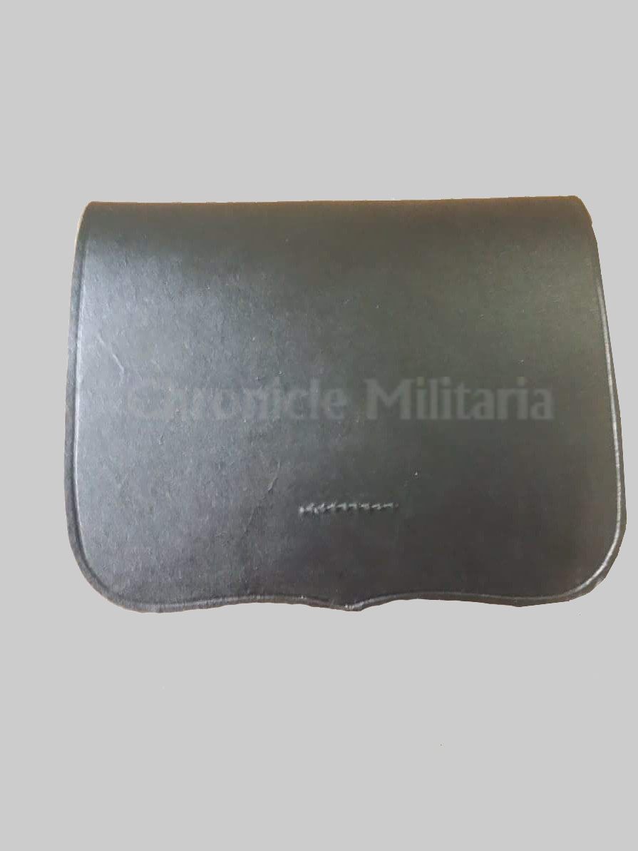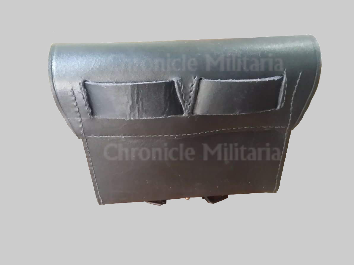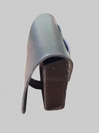 Made of hard cow leather it has brass finial and steel belt loops.It is stiched in black thread.