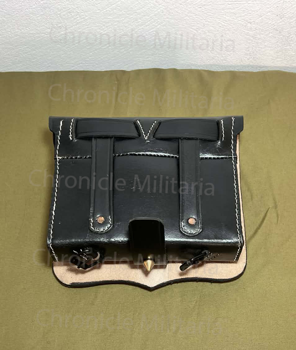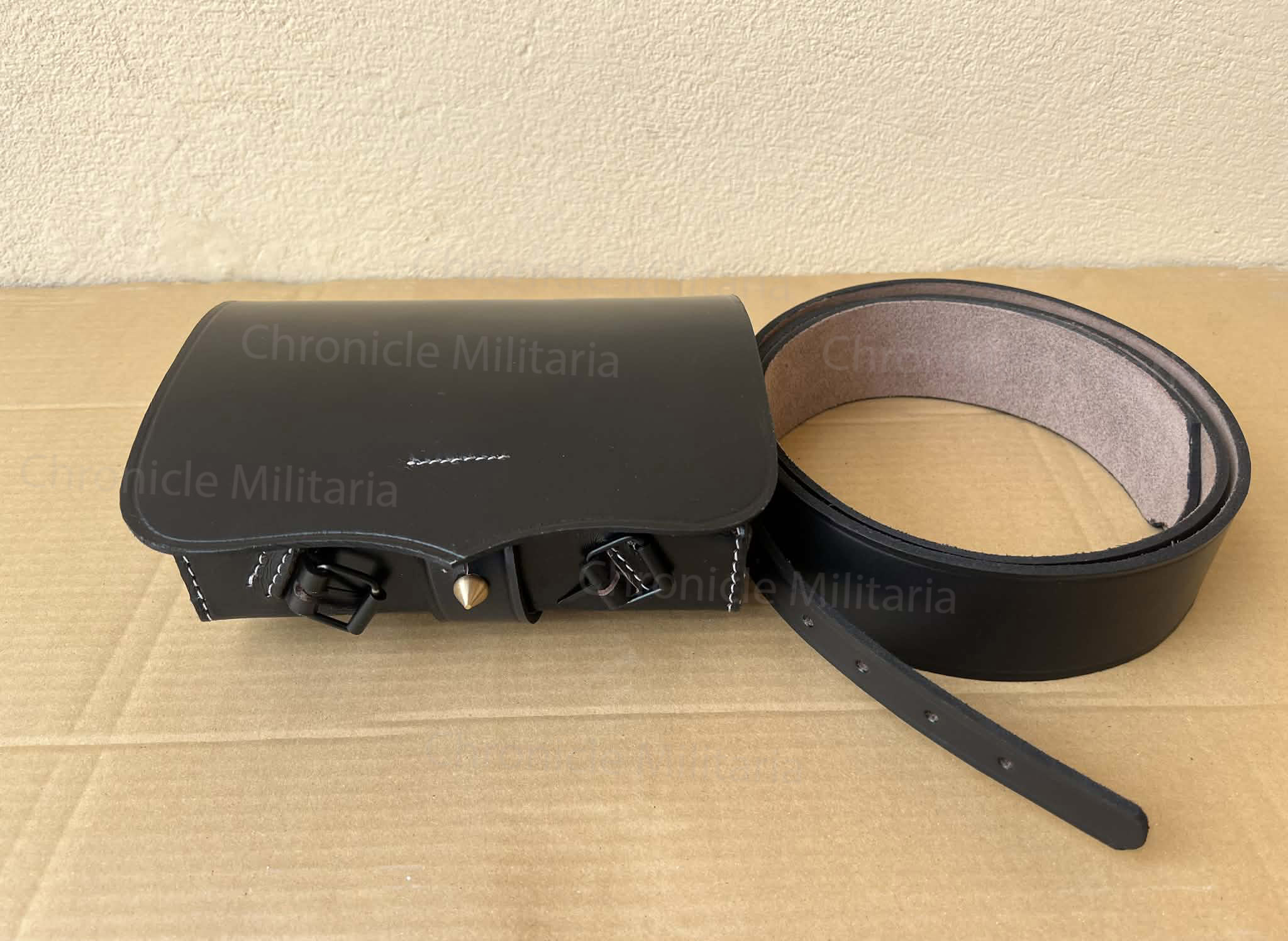 This is American civil war era cartridge box made of quality black leather with all the discerptions of the original box of that time .
