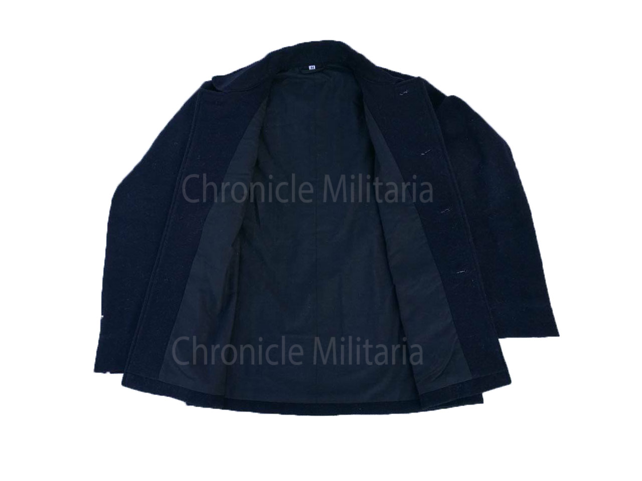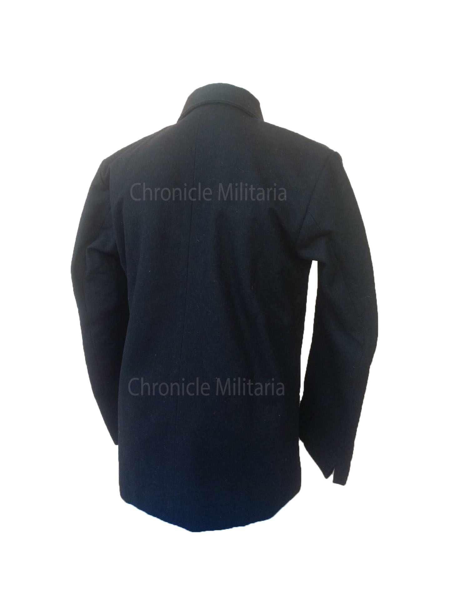 Four button federal navy blue sack coat . made of navy blue wool and cotton lined.