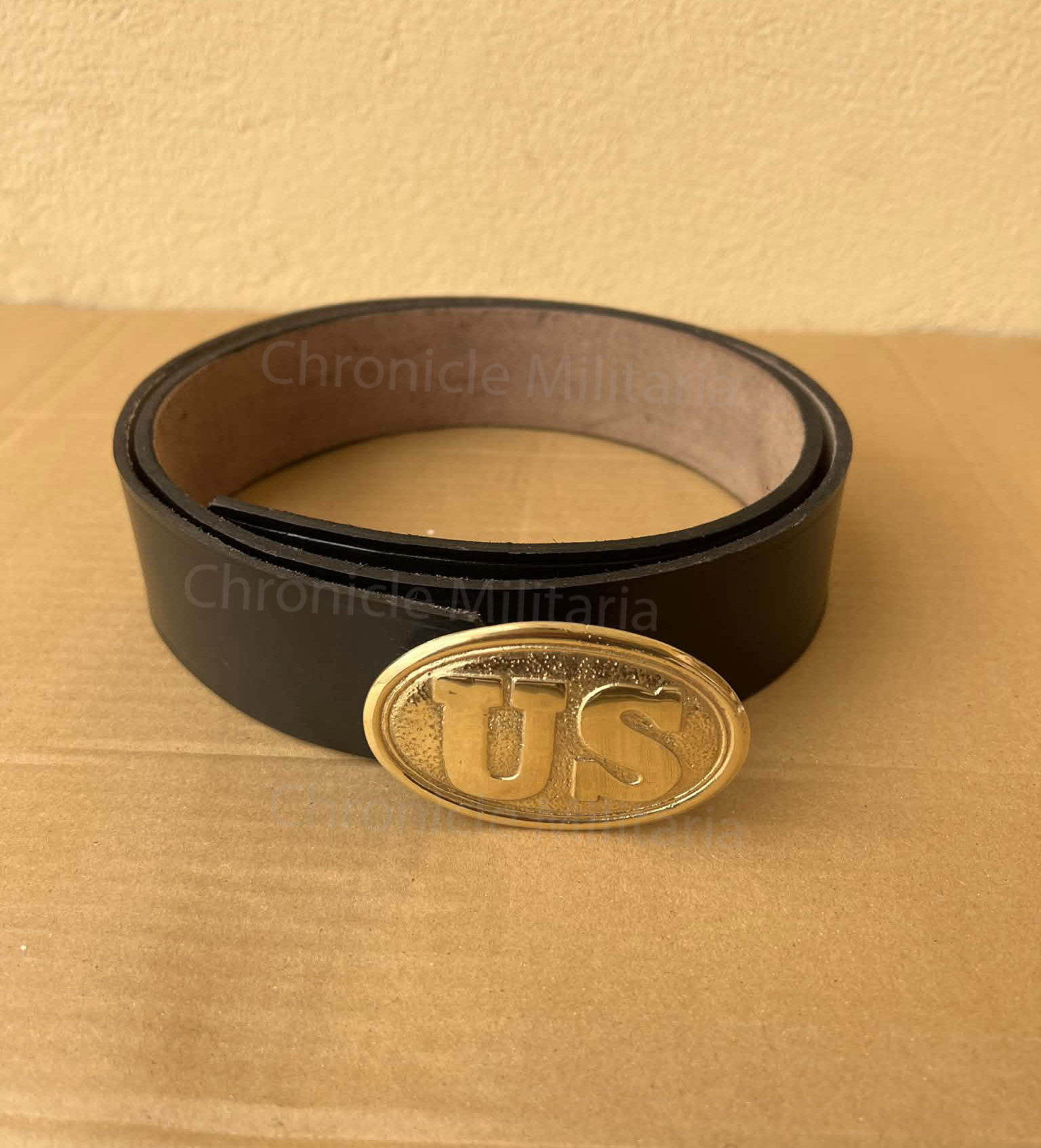 This is US enlisted belt with oval cast brass buckle. It is black leather that can be fit up to 52 inches of waist size.