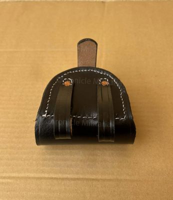 This cap pouch is quality leather, brass finial two belt loops at the back and is sewn in white thread.