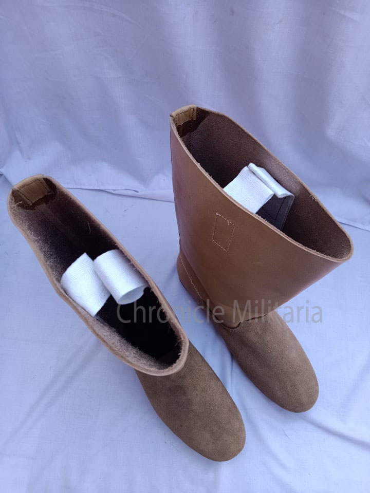 These jackboots are made great quality natural tan leather with iron heel plates,hobnails pegged sole. These are virtually identical to the wartime WW2 German Jack Boots.