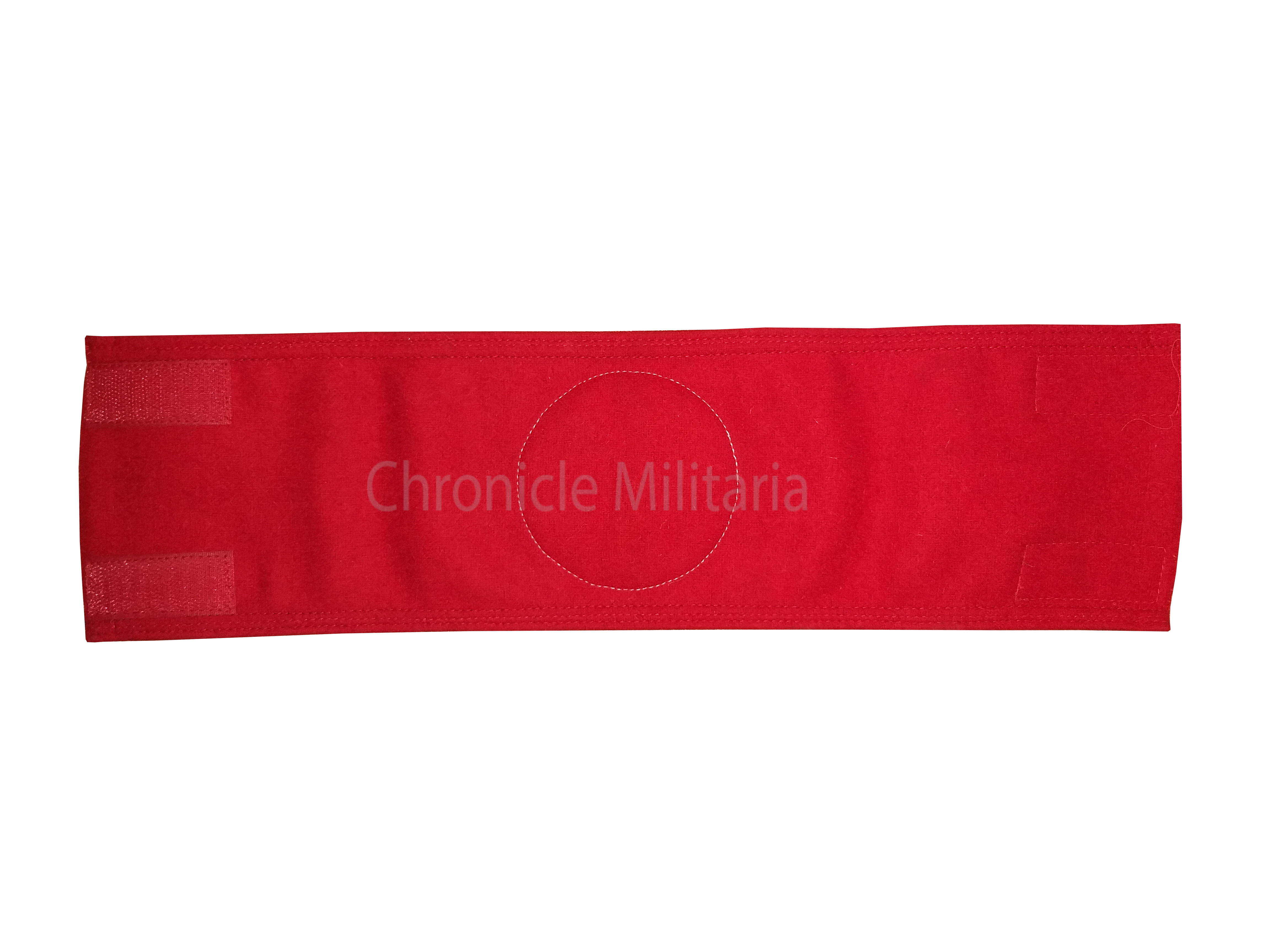 Reproduction Waffen-SS Armband made from Wool.The armband is made from a three piece construction of a black cotton Swastika mounted on a white cotton disc which in turn is stiched to the red wool body.