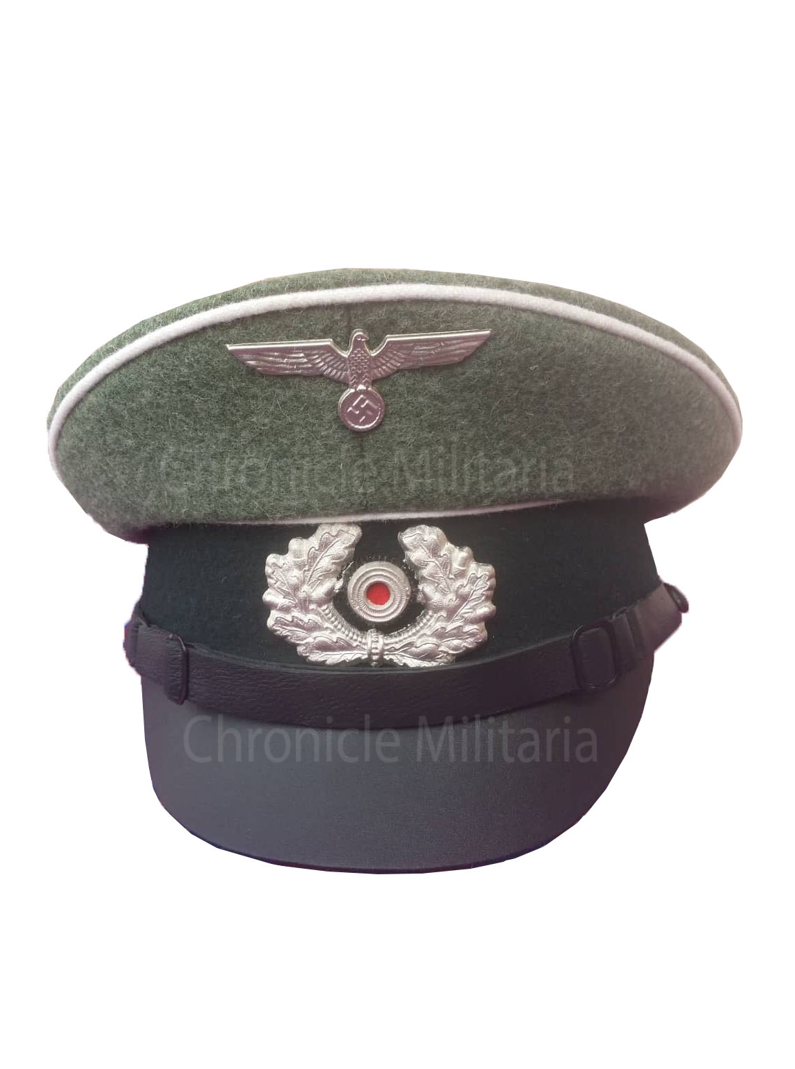 German Army visor cap made of fieldgrey wool with insignia.