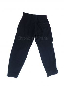 Its Hitler youth flak trousers made of navy blue wool and white cotton strings at the leg openings.plastic buttons are used .