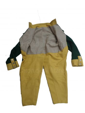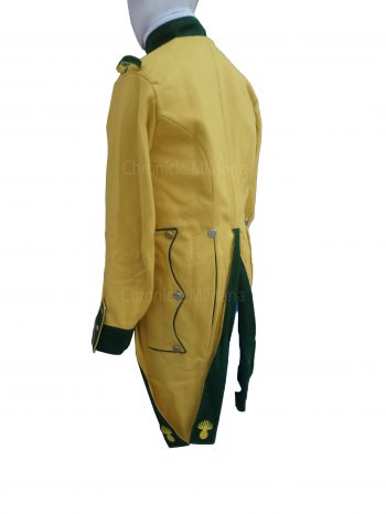 This is dragon coat belongs Napoleonic war. Its made of yellow and dark green wool with pewter silver color buttons and silver pleats.