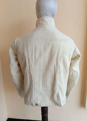 This is French vest sleeves made of quality off white wool with cotton lining and brass buttons. It has a stand up collar and two pockets with pocket flaps.
