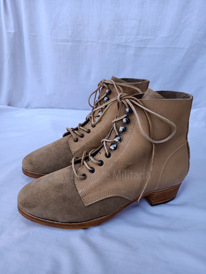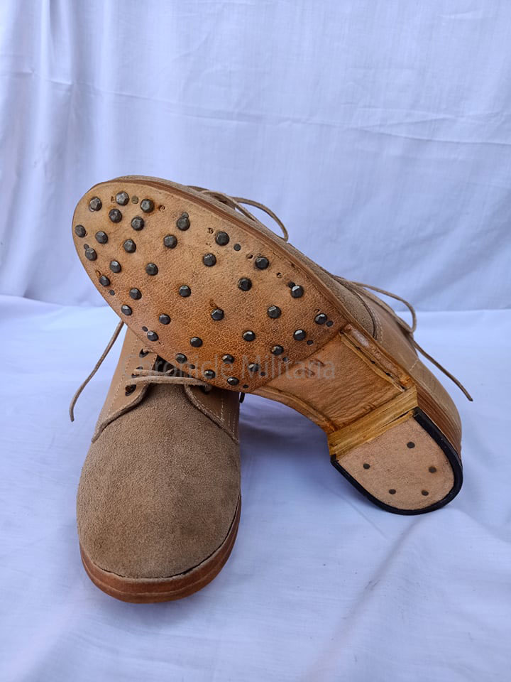 These are German low boots made of natural tan leather, Boots are made up of hob nails heel irons and pegged and sewn sole as well same as the original boots were in German ww2.