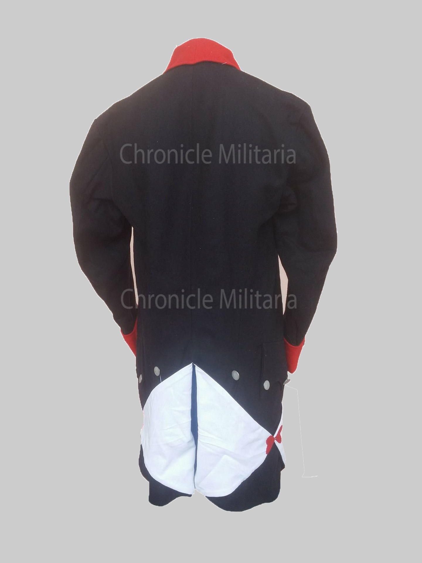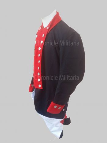 continental Army Regimental coat made navy blue wool and red facing, pewter buttons and cotton lining