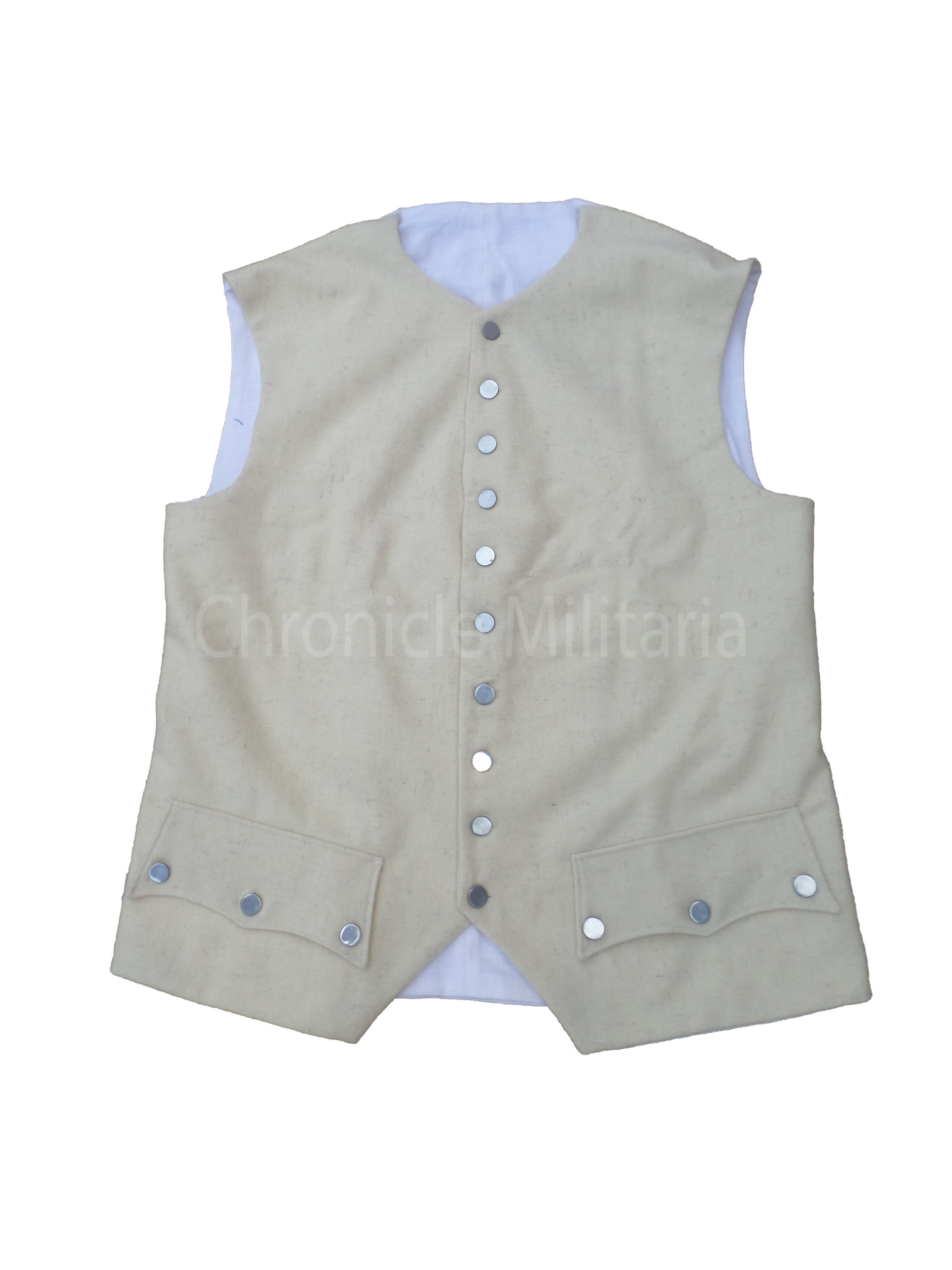 Revolutionary war off white wool and cotton vest with pewter buttons