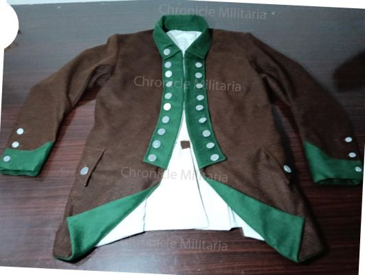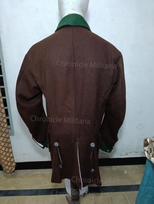 Its very nice example of Revolutionary war Pennsylvania regiment short coat made of great quality dark brown wool with light green facing, cuffs , collar and turn backs with cotton lining and pewter buttons.